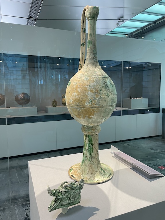One of the finer items recovered is this large and delicate pitcher with Persian as well as Chinese motifs.