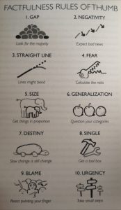 “Factfulness: ten reasons we’re wrong about the world – and why things are better than you think” is a book by the late Hans Rosling (professor of international health) with his son and daughter-in-law, Ola and Anna (creators of Trendalyzer – which was acquired by Google – and DollarStreet). Together they founded the GapMinder Foundation “to fight devastating ignorance with a fact based worldview that everyone can understand.”
