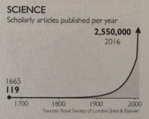 The greatest challenge for education is surely to fundamentally transform its model in light of the fact that the volume of information that now exists to be studied, evaluated and acted upon is exponentially larger than we think (Nature magazine suggests that the number of scientific articles that are published is doubling every 9 years). And our primary way to access all this information is not books sourced by teachers in our local school but mobile phones. What does that mean for what, how and where we learn and consequently for the role of a teacher?