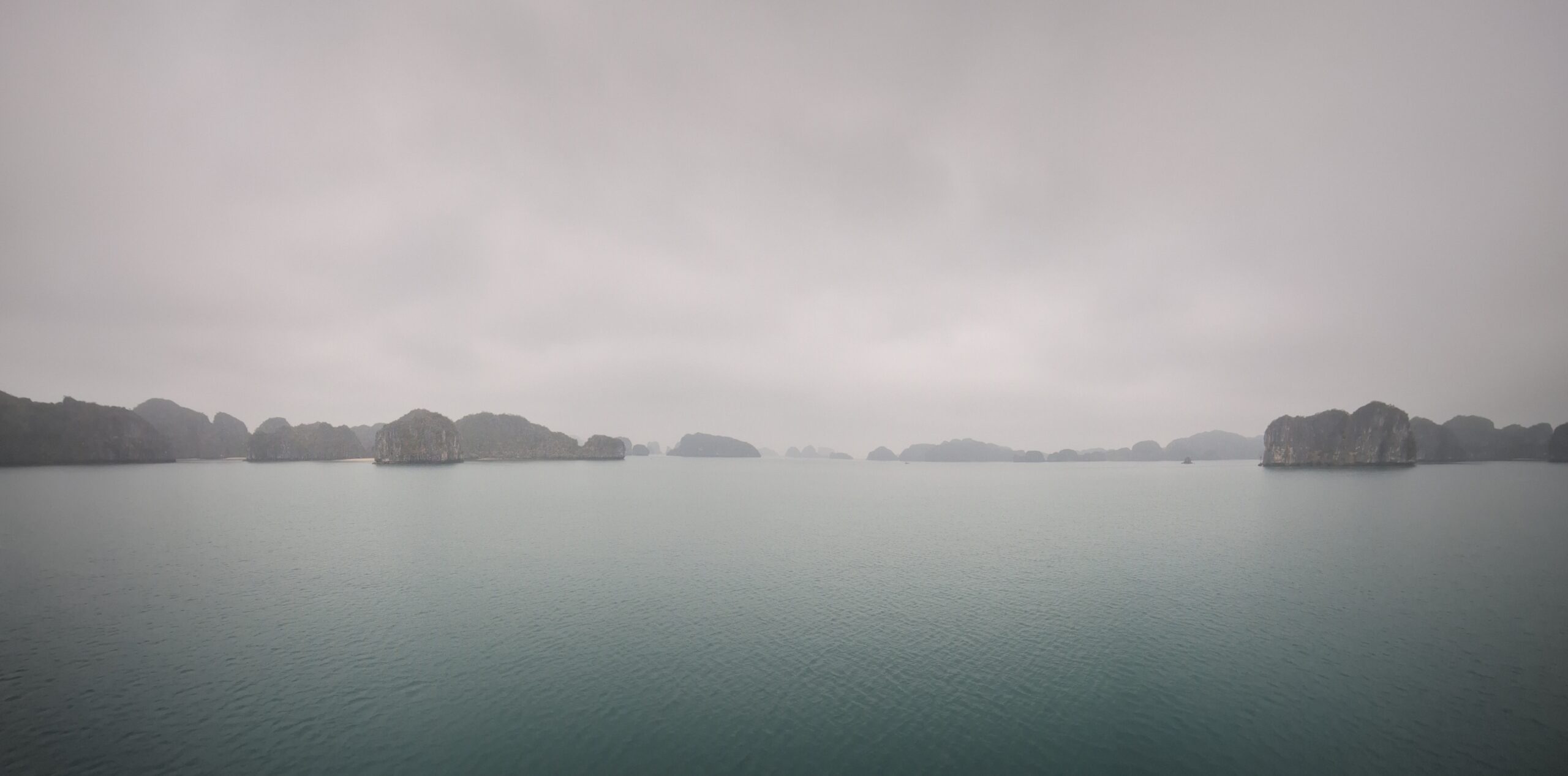 Legend has it that dragons came down to protect the people of this area from foreign invaders and that is why the bay is called “Ha Long” (Descending Dragons). The karst camel humps across the water look like the petrified undulating bodies of legendary creatures that passed away centuries ago. This sea of tombstones is shrouded with misty dust-sheets, like the furnishings of a stately home in the wake of the passing of the previous inhabitant. What will remain and what will go; what will be revitalised and what will be broken up; what will be brought forward and what will be left behind; what will be repurposed and what will be discarded? Now is not the time to decide. Now is the time to acknowledge the passing and to allow the dust to fully settle.
