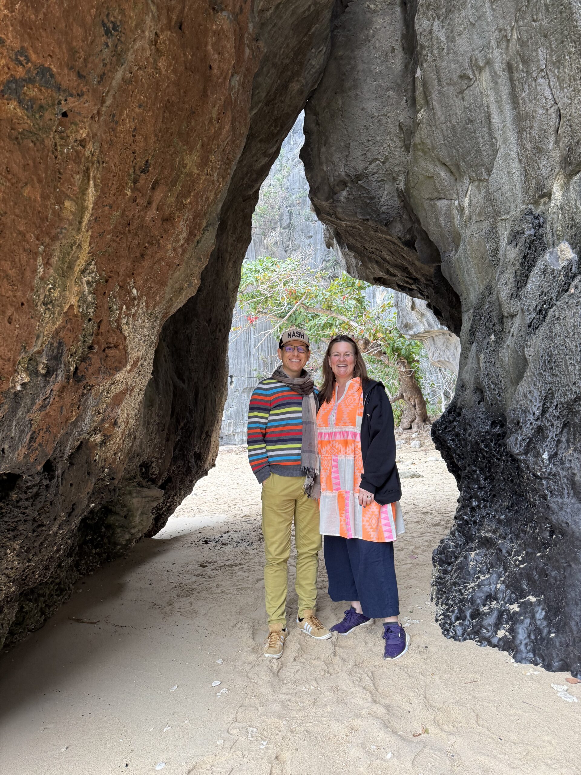 Our ship’s tender deposited us on a small beach dominated by a large Indian Almond tree that we viewed through an eyelet in the rock face.